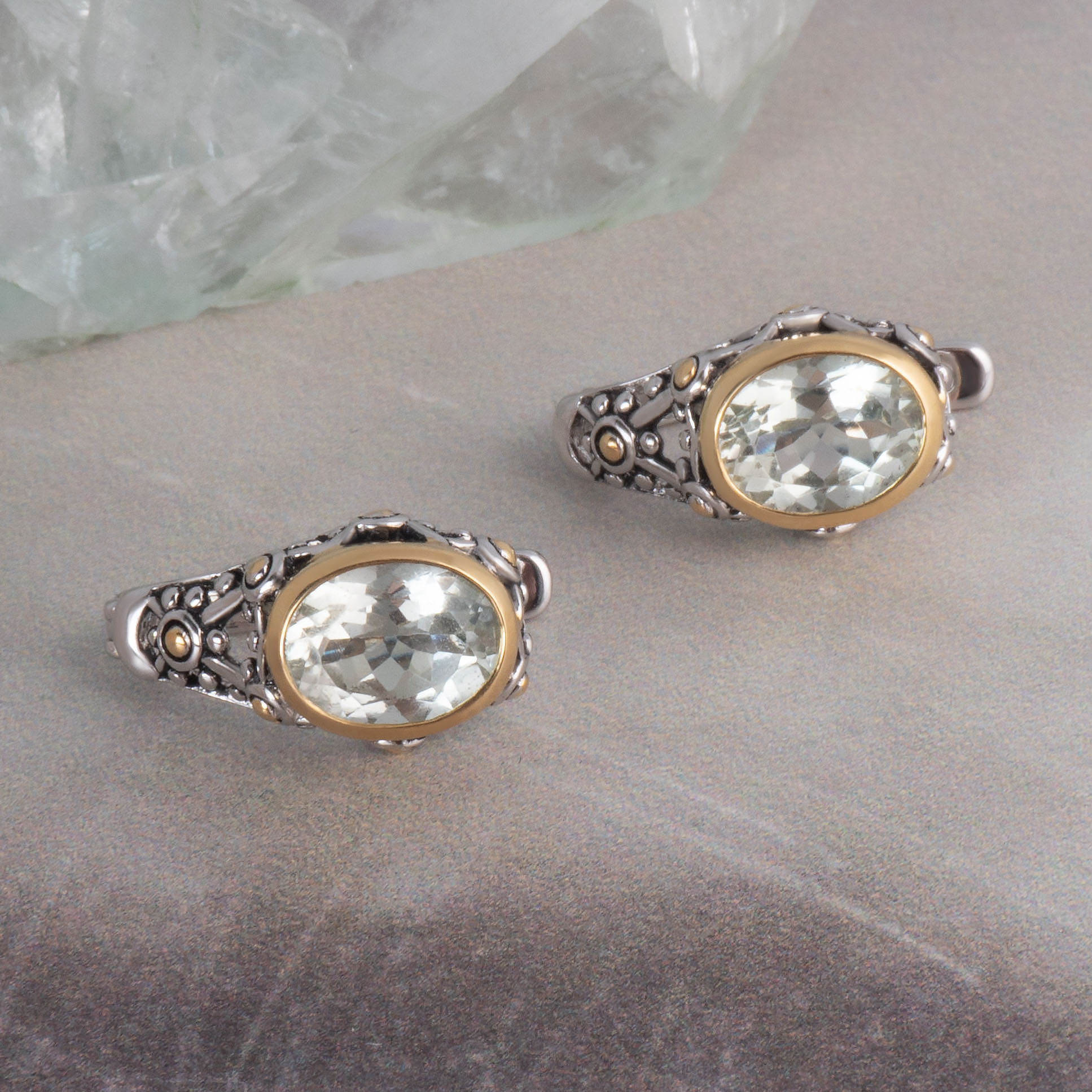 Празиолит - кварц нежного мятного оттенка, выглядит очень привлекательно и благородно. Красота празиолита - в его прозрачности и чистоте, в мягкости зеленого цвета. Этот камень называют также “зеленым аметистом“, ведь часто аметисты обрабатывают путем нагрева до 500 градусов, что заставляет их менять свой фиалковый оттенок на мятный. Чаще всего огранщики придают ему четкие формы, чтобы наиболее раскрыть сияние и блеск минерала.