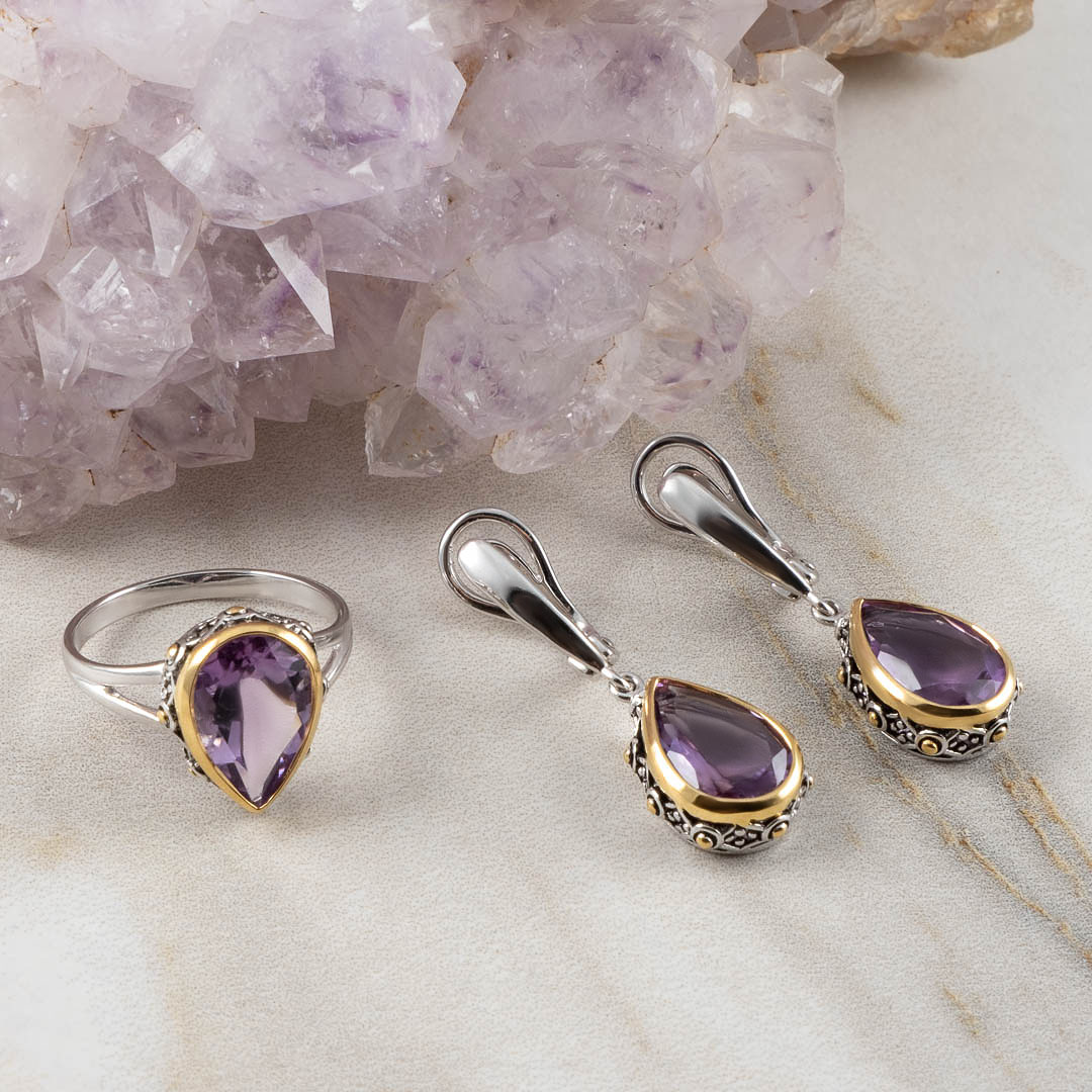 Аметист - камень чистоты и преданности. Во все времена он был символом искренности и миролюбия. Его завораживающий лавандовый цвет способствует успокоению, очищению сознания, настраивает на умиротворение и гармонию.