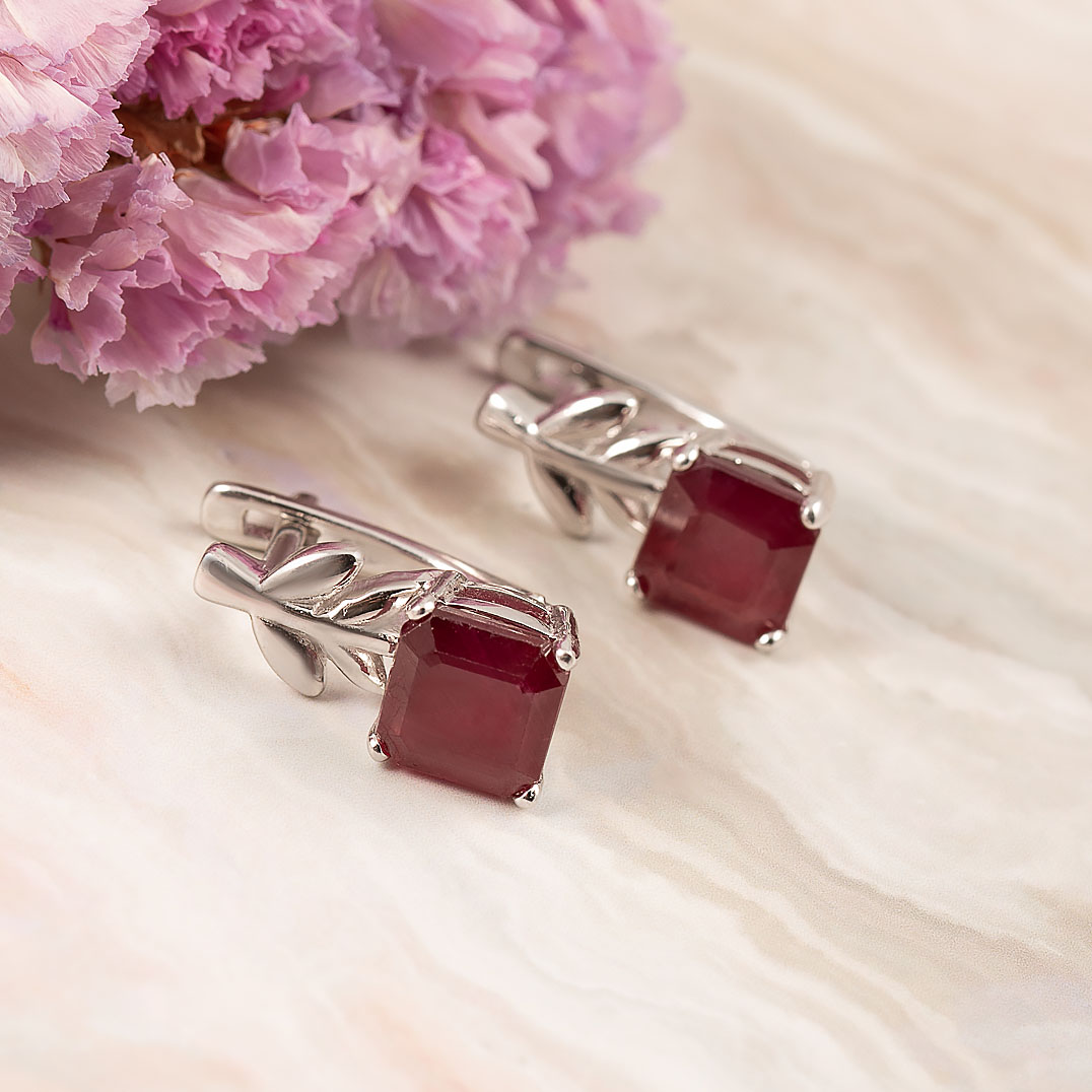 Серьги из серебра с рубином