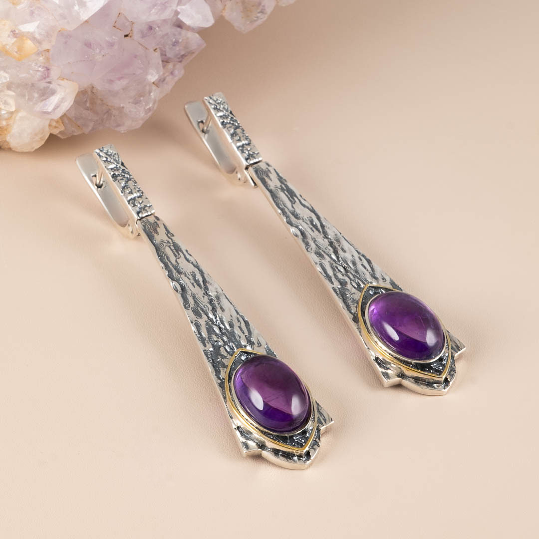 Серьги из серебра с аквамарином, гранатом, аметистом