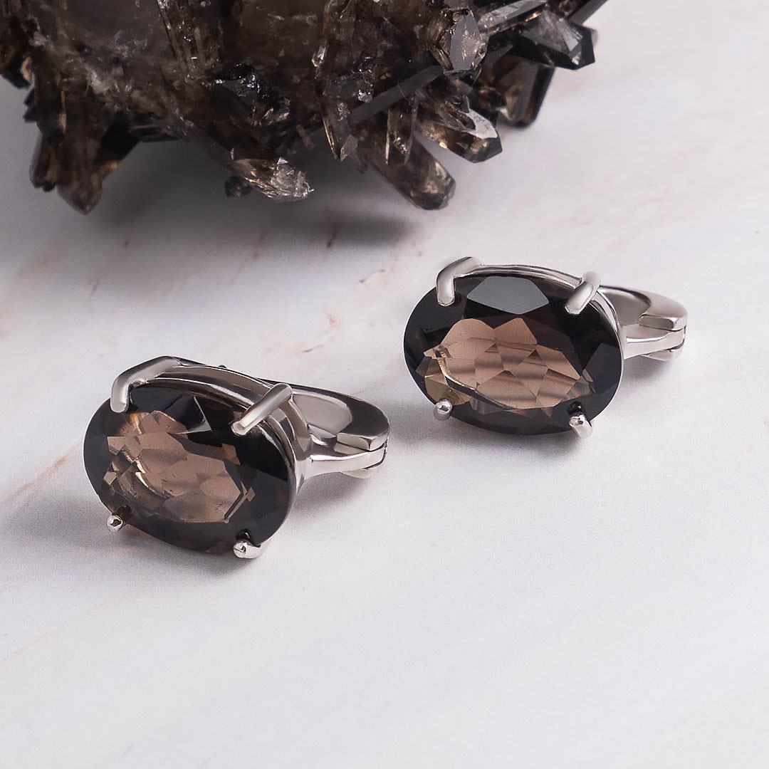 Серьги из серебра с раухтопазом (дымчатый кварц)