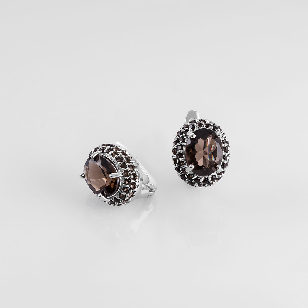Серьги из серебра с раухтопазом (дымчатый кварц)