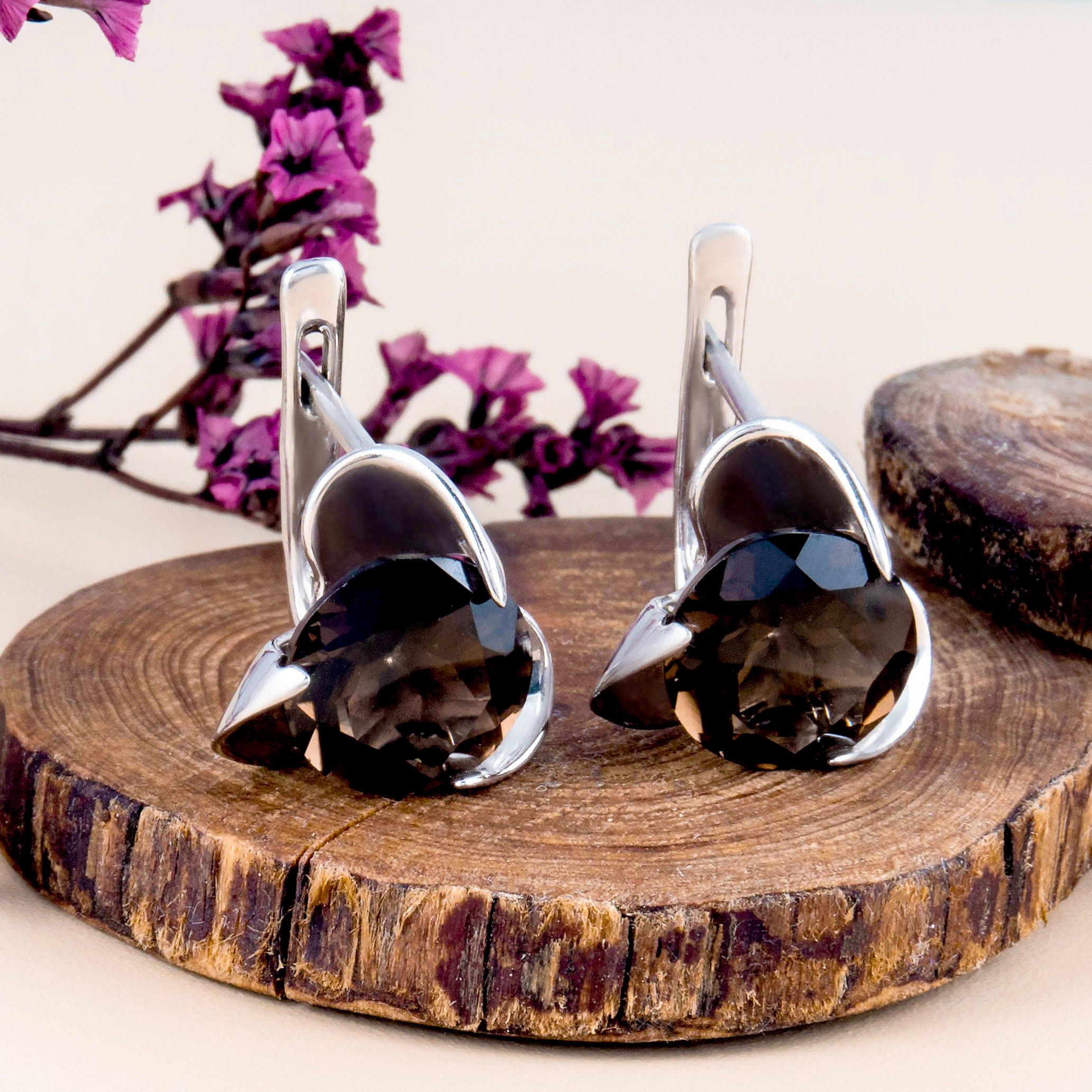 Серьги из серебра с раухтопазом (дымчатый кварц)