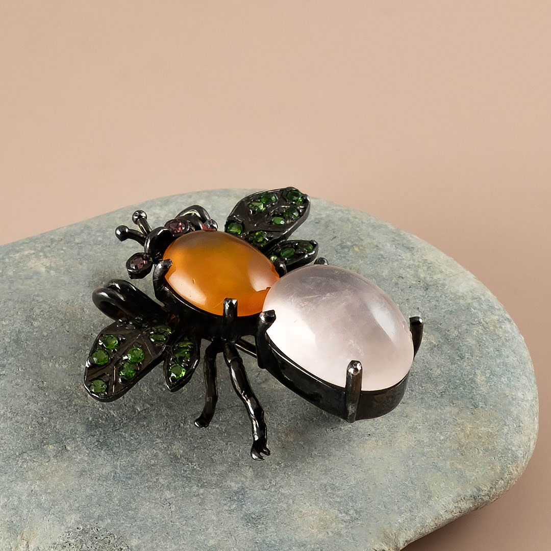 Украшения из серебра с сердоликом, розовым кварцем, хромдиопсидом