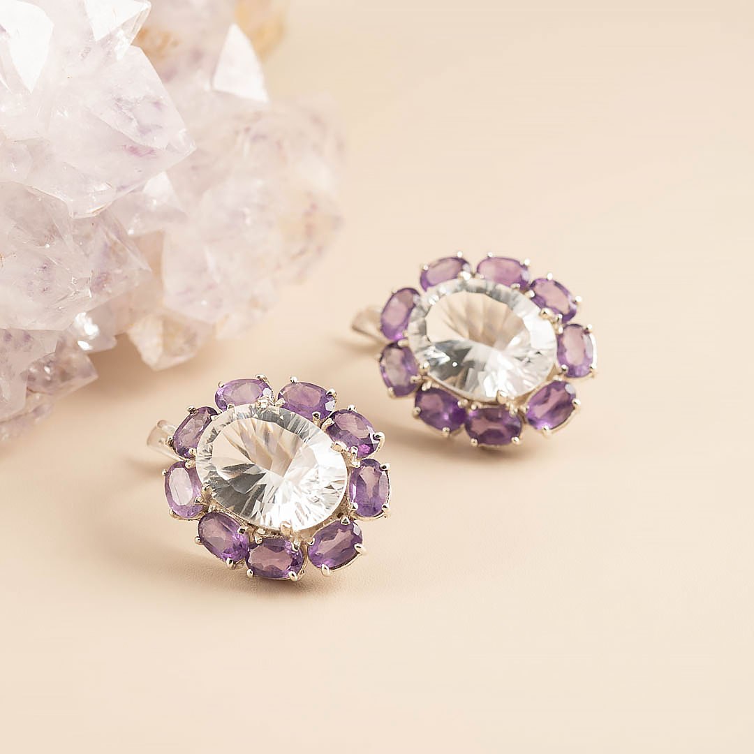 Серьги из серебра с аквамарином, гранатом, аметистом